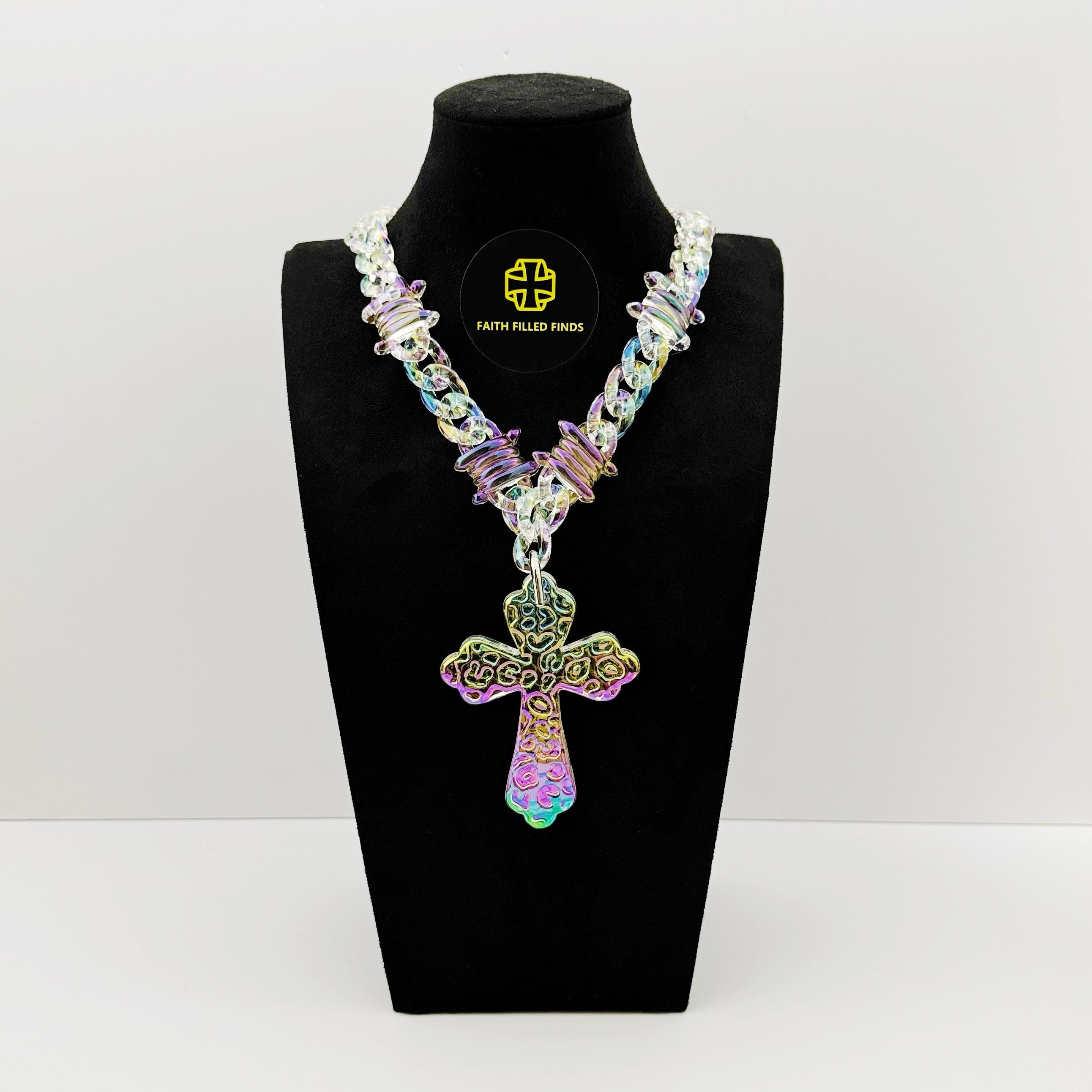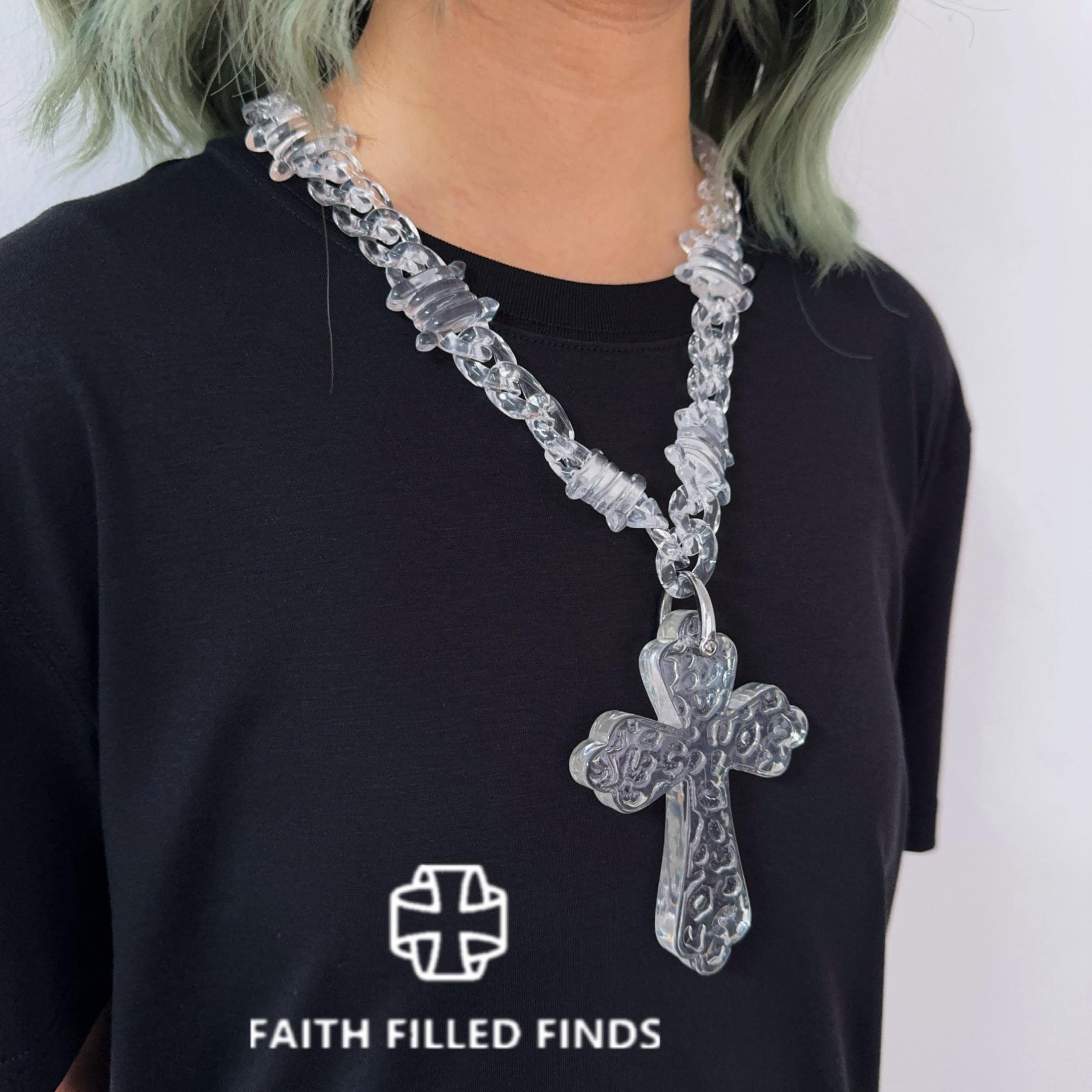 Make a bold statement with the Clear Barbed Wire Chain Necklace, a trendy X-Ray Link Choker designed for men, women, boys, and girls. Perfect for daily wear, parties, and streetwear, this necklace features 20+ Plastic links and measures 19 inches with the clasp (17.5 inches without). Popular on TikTok and Instagram and loved by alternative fashion lovers, it’s an ideal birthday gift, holiday present, or an addition to your streetwear collection.