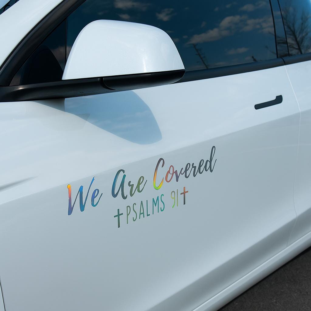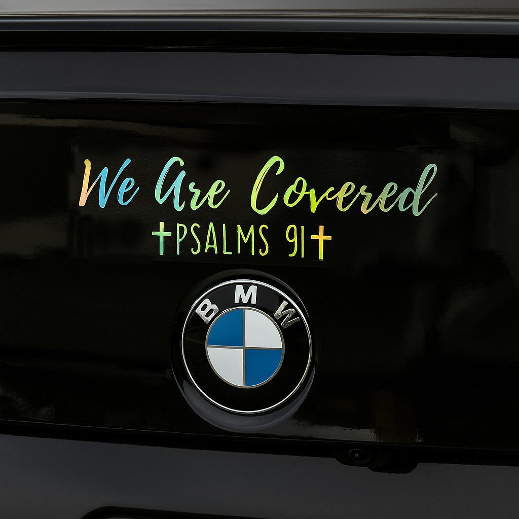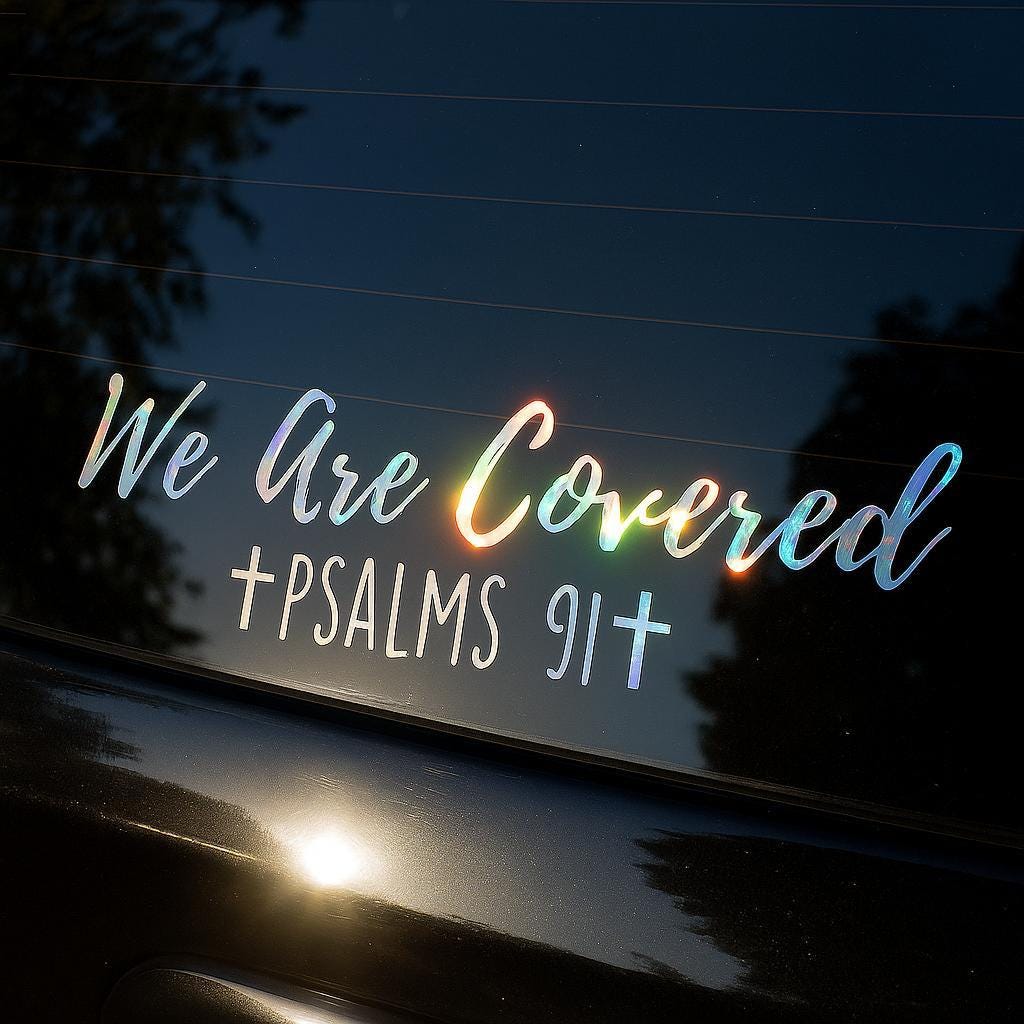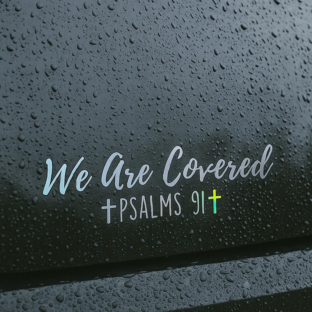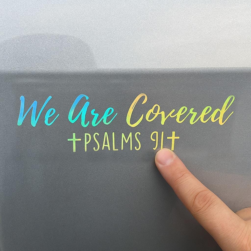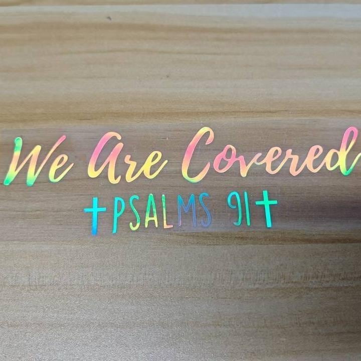 “We Are Covered – Psalms 91” reflects the promise of Psalm 91—God’s shelter and protection over you and your loved ones. A simple, powerful faith declaration for your car, laptop, or window. Also perfect for daily encouragement on the road or on personal items.